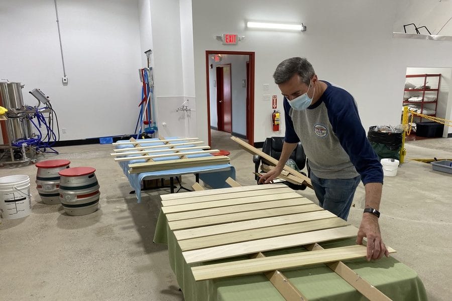 Most people will be seated in the parking lot on the side of the building. Flynn and his crew are still constructing picnic tables to make up for the limited indoor seating.